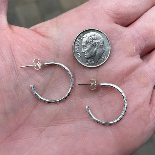 Small Sterling Silver 3/4" Hammered Hoop Earrings