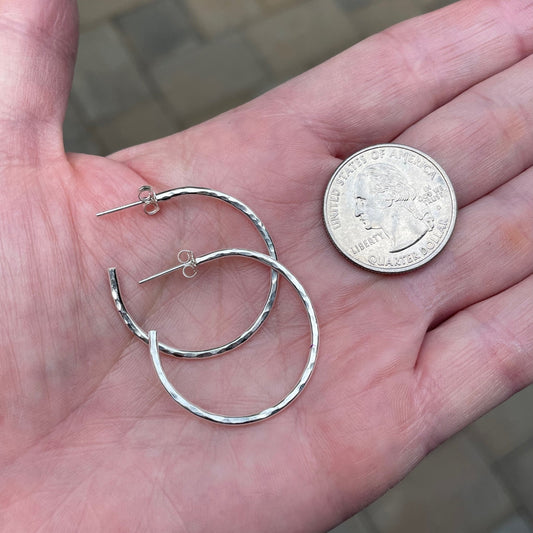 Medium Sterling Silver 1 1/4 inch Hammered Hoop Earrings