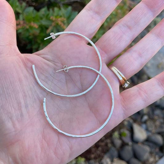 Large Sterling Silver 2" Hammered Hoop Earrings