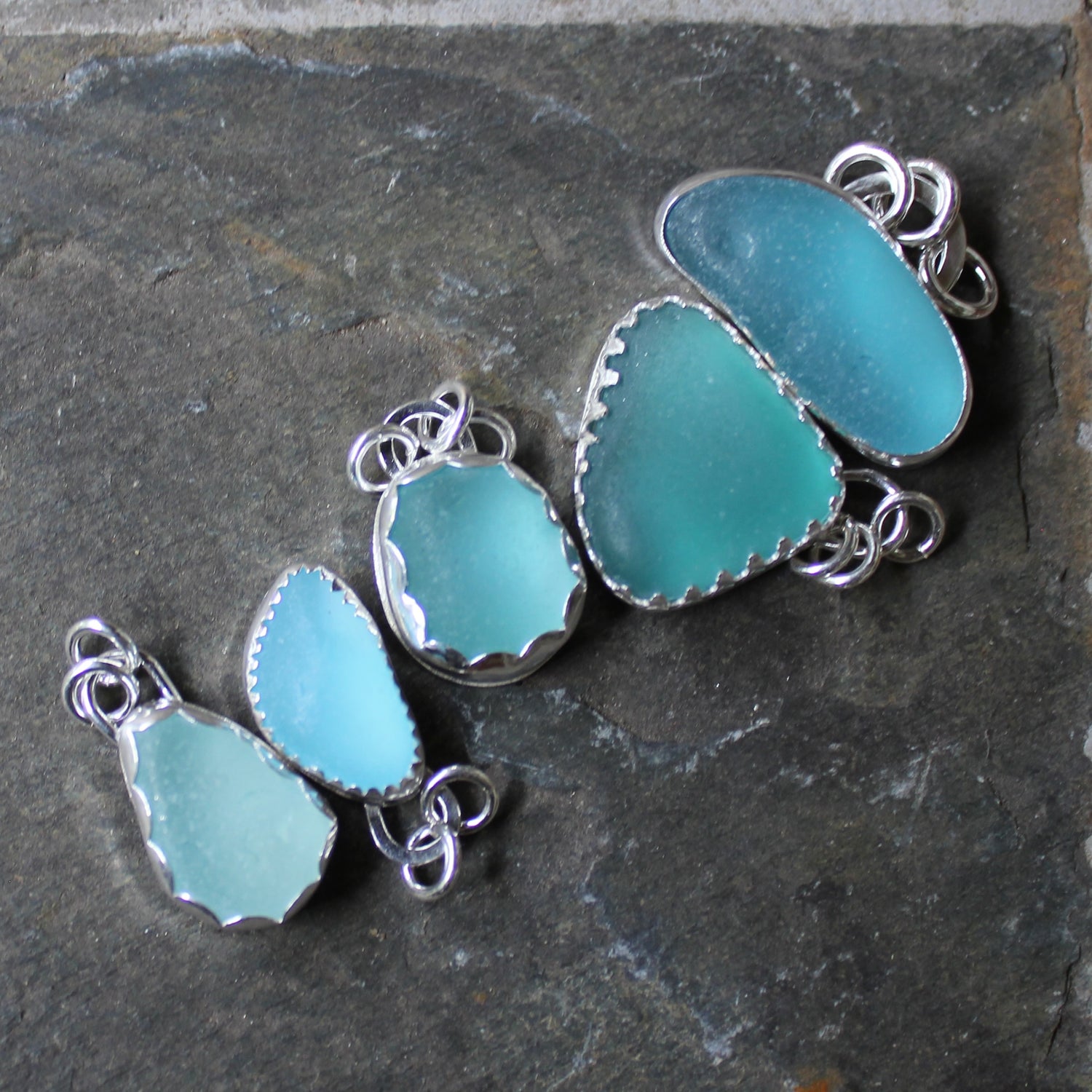 Handcrafted sterling silver sea glass necklaces made by Barb Macy in Corvallis,...