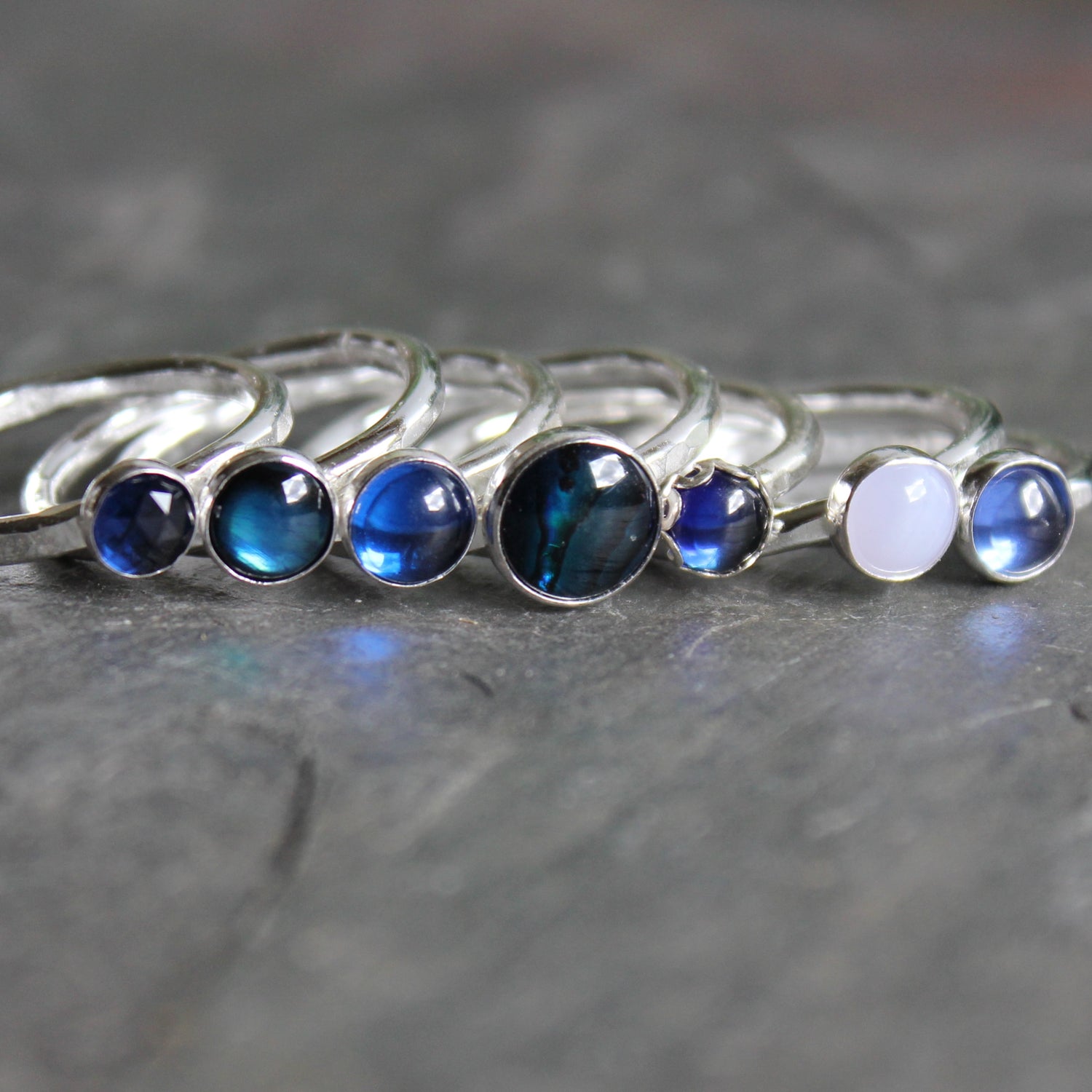 Sterling silver gemstone stacking rings handmade by Barb Macy in Corvallis, OR.
