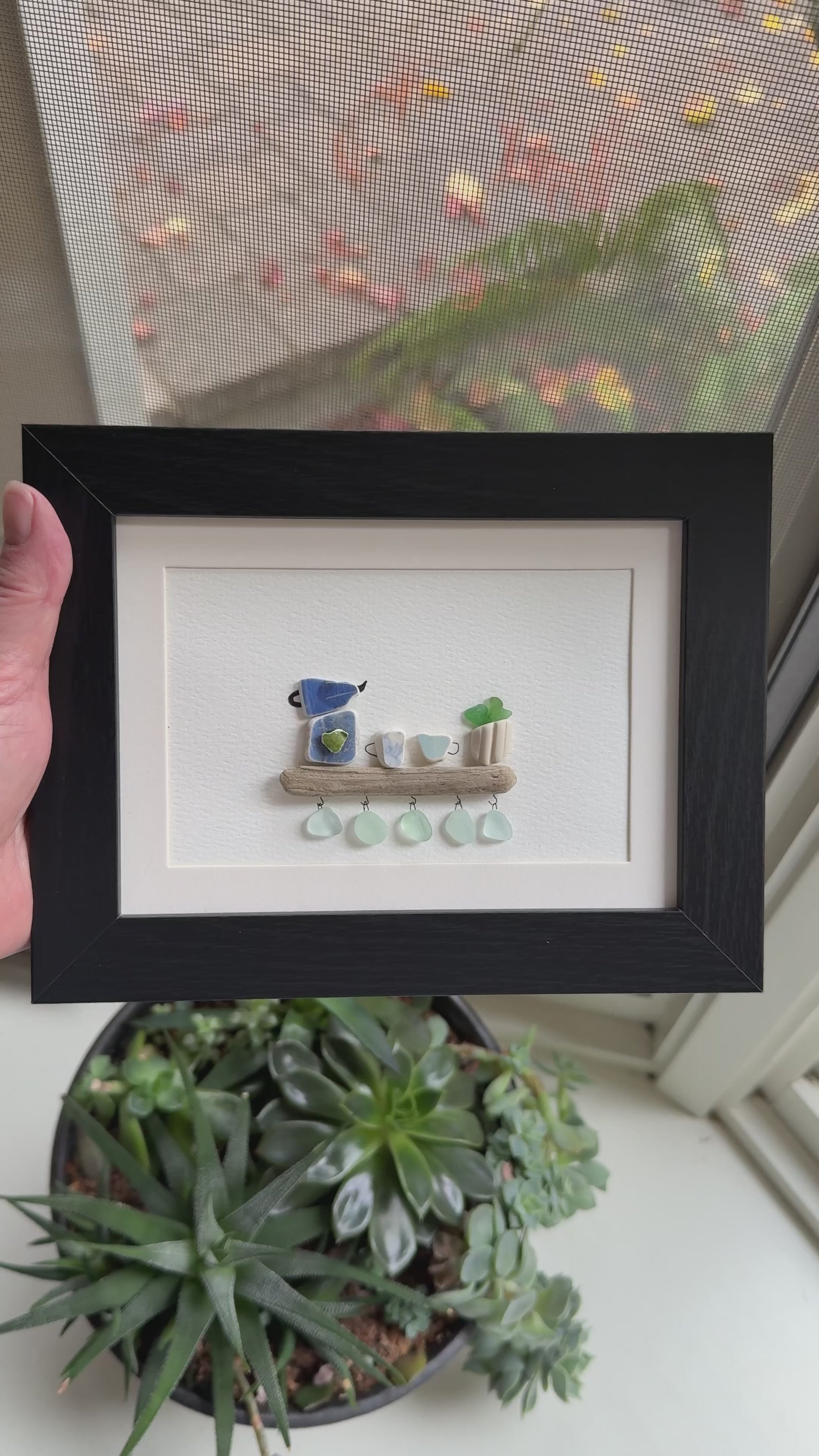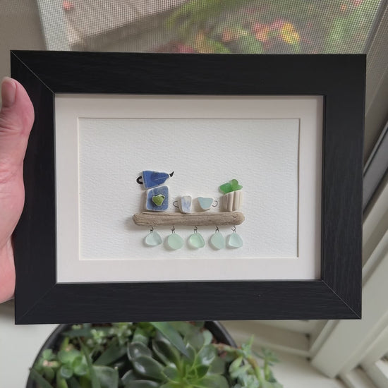 Bring a touch of seaside charm and cozy coffeehouse warmth into your home with this one-of-a-kind handmade sea glass art piece.