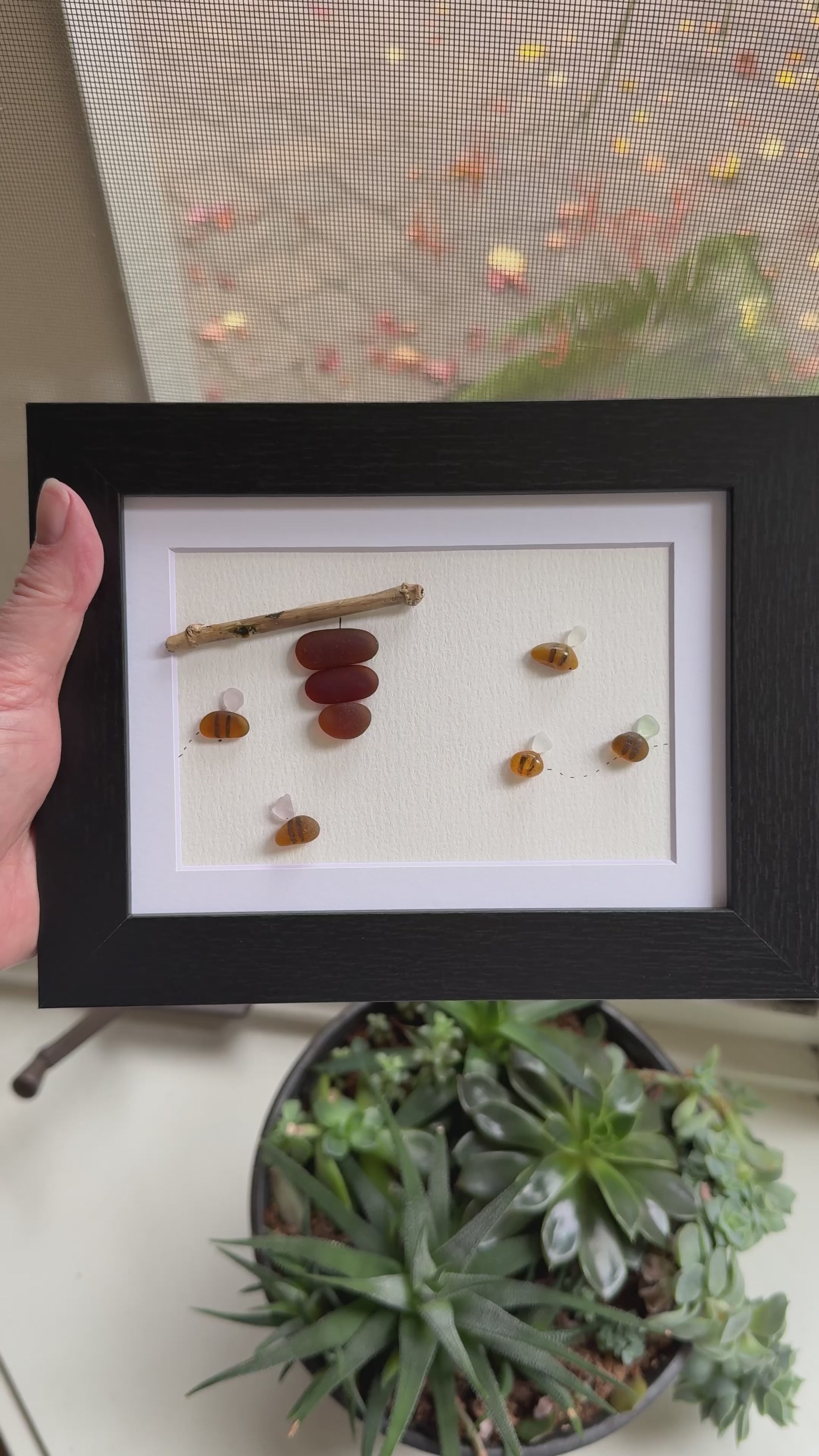 Bring a touch of nature and coastal charm into your home with this handmade honey bee sea glass artwork, created using genuine sea glass and natural driftwood.