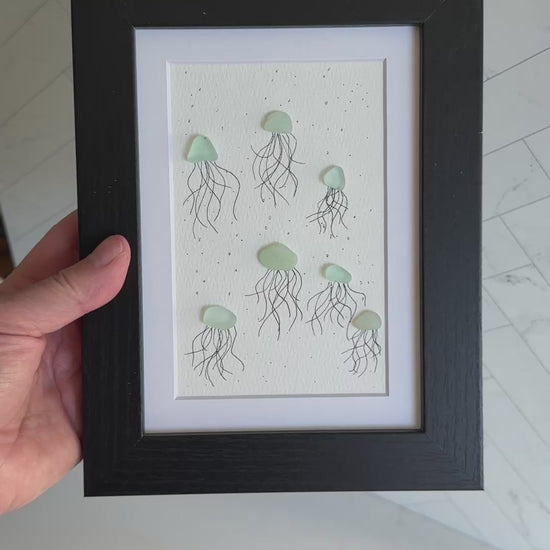 Jellyfish Sea Glass Art | 5x7 Framed Ocean-Themed Wall Decor | Handcrafted Coastal Gift